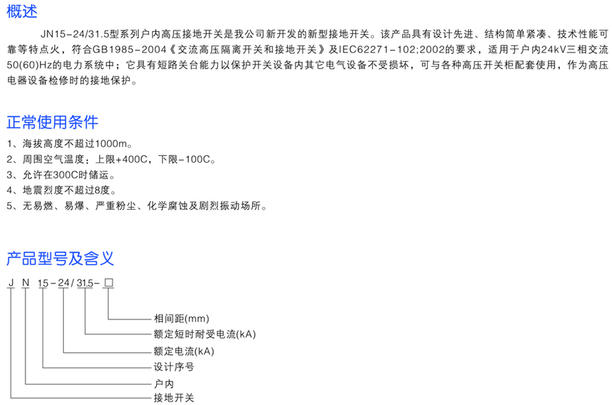 JN15-24/31.5戶內高壓接地開關