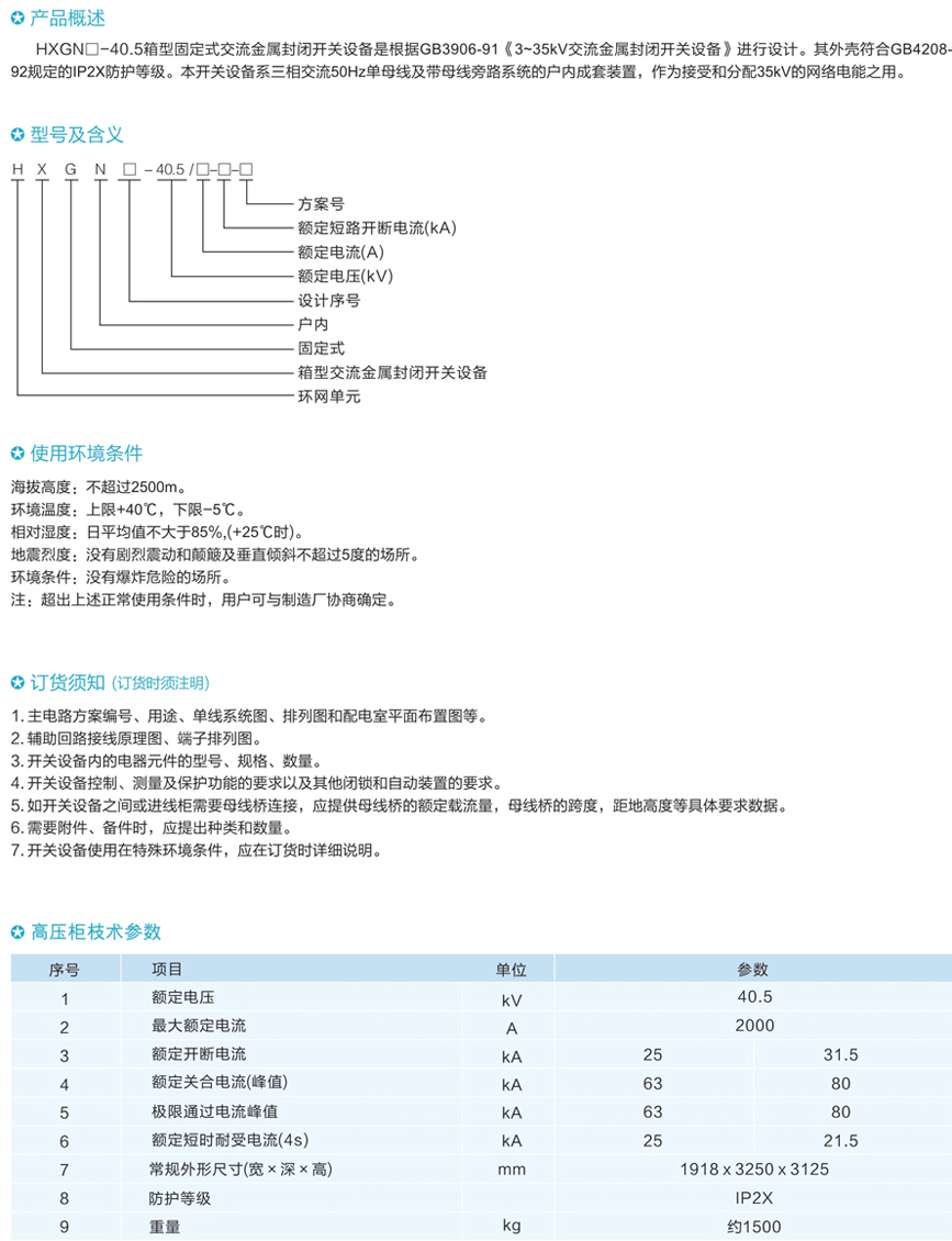 HXGN口-40.5高壓真空環(huán)網(wǎng)開關(guān)設(shè)備