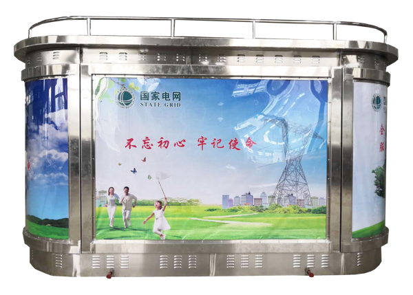 半埋式景觀箱式變電站(以下簡(jiǎn)稱(chēng)地埋式箱變)就是為了滿(mǎn)足上述領(lǐng)域的要求而設(shè)計(jì)開(kāi)發(fā)的一種全新的電力成套設(shè)備,它是由地埋式變壓器和廣告燈箱形式的戶(hù)外成套開(kāi)關(guān)設(shè)備兩部分組成的。地埋式變壓器是由變壓器、高壓負(fù)荷開(kāi)關(guān)、熔斷器等組合在一起的一種新型的緊湊型的電力設(shè)備,它安裝在地坑中,不占用地表空間,而且能在一段時(shí)間內(nèi)浸沒(méi)在水中運(yùn)行。作為常用景觀的廣告燈箱式的戶(hù)外開(kāi)關(guān)設(shè)備是集廣告牌及戶(hù)外開(kāi)關(guān)設(shè)備于一體的成套設(shè)備,它安裝在地面上,箱體內(nèi)部為戶(hù)外高低壓配電柜,兩側(cè)為廣告燈箱,具有極佳的視覺(jué)效果。
