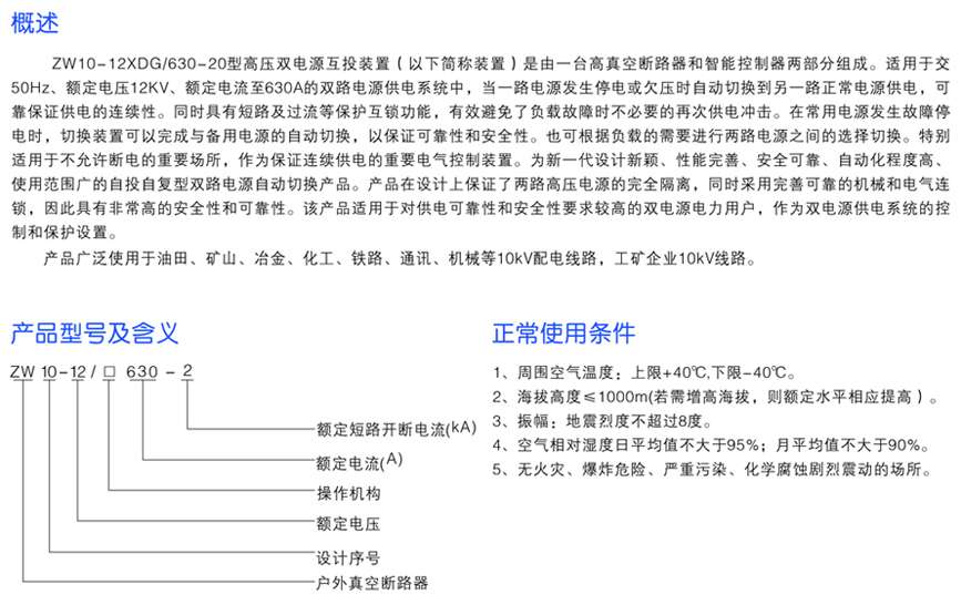 ZW10-12XDG系列戶外高壓雙電源互投裝置
